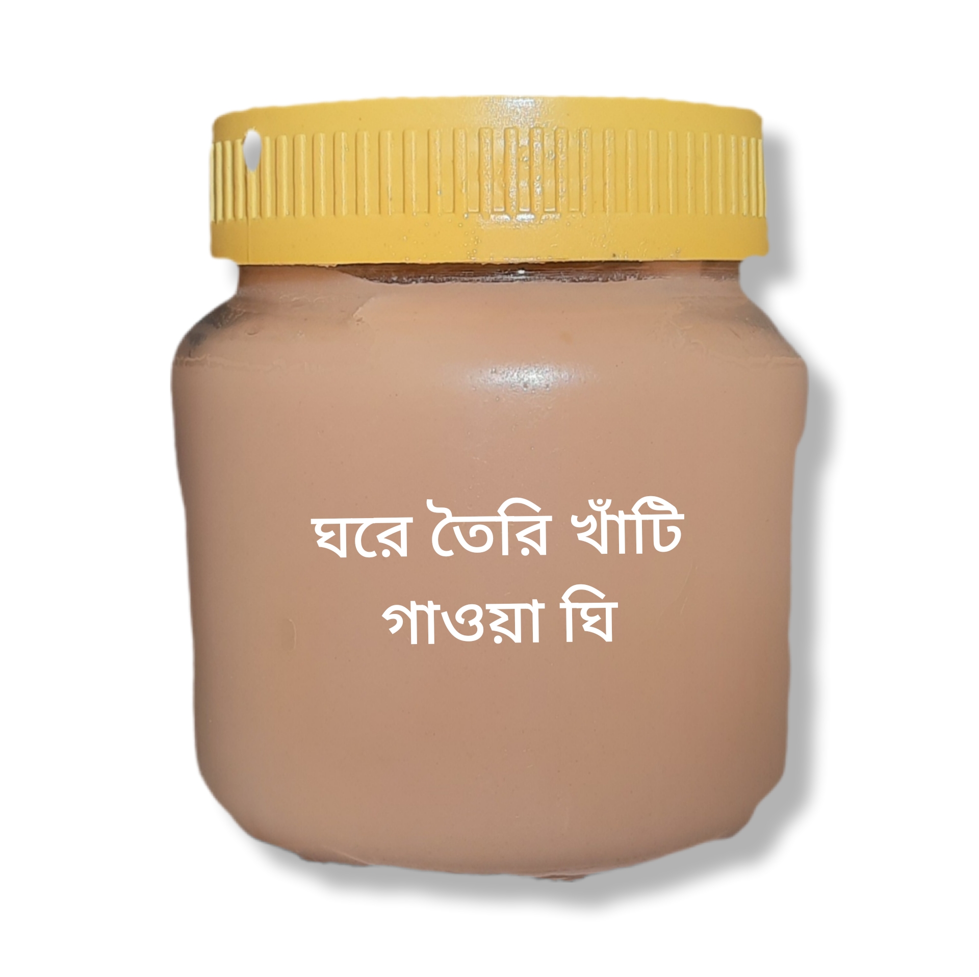 ঘরে তৈরি খাঁটি গাওয়া ঘি প্রস্তুত করা হয়েছে শতভাগ বিশুদ্ধ গরুর দুধ থেকে, ঐতিহ্যবাহী দেশি পদ্ধতিতে। কোনো ধরনের কেমিক্যাল, প্রিজারভেটিভ বা কৃত্রিম রং ছাড়াই তৈরি এই ঘি স্বাদে সুগন্ধি ও পুষ্টিগুণে ভরপুর।